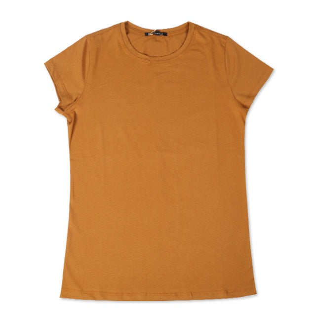 High Quality 18 Color S-3XL Plain T Shirt Women Cotton Elastic Basic T-shirts Female Casual Tops Short Sleeve T-shirt Women 002