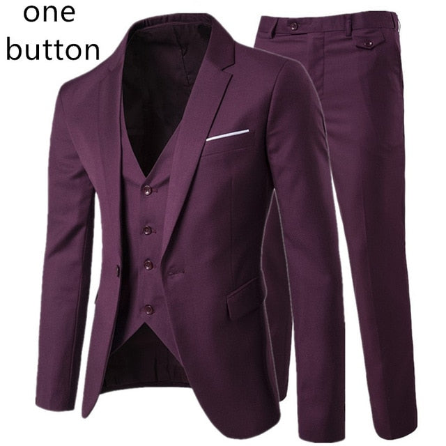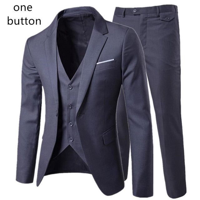 2019 men's fashion Slim suits men's business casual clothing groomsman three-piece suit Blazers jacket pants trousers vest sets